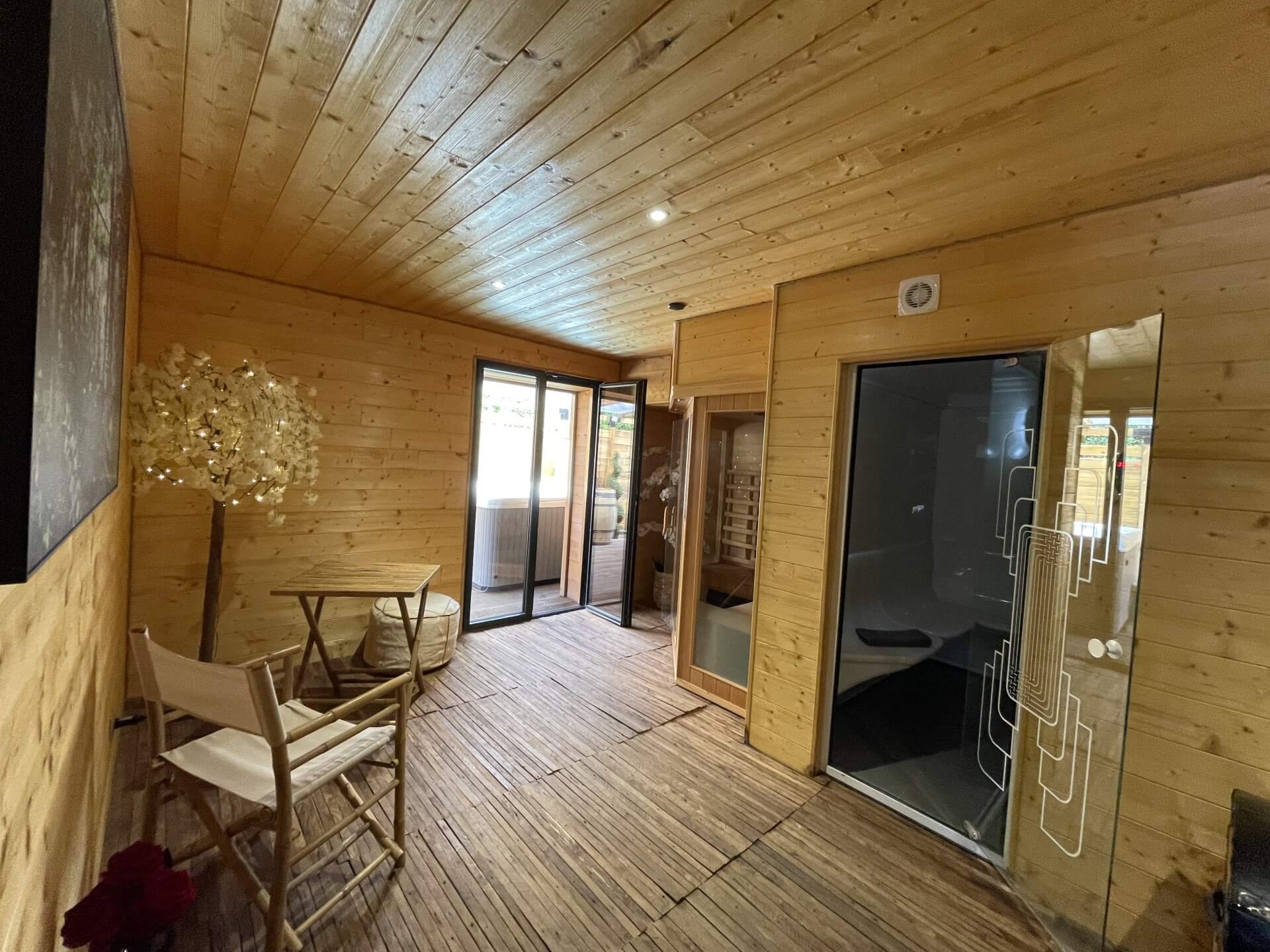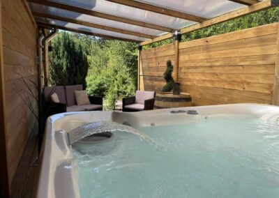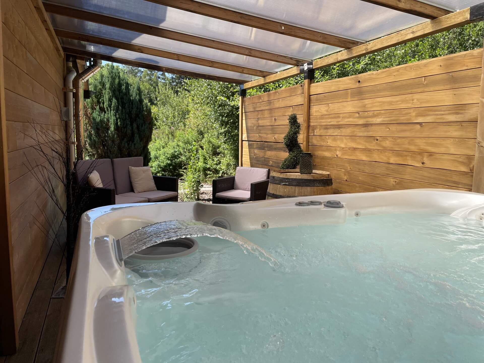 - Grand jacuzzi chauffé à 38°C accessible 24h/24h toute l’année, en toute intimité, sur grande terrasse privée avec barbecue