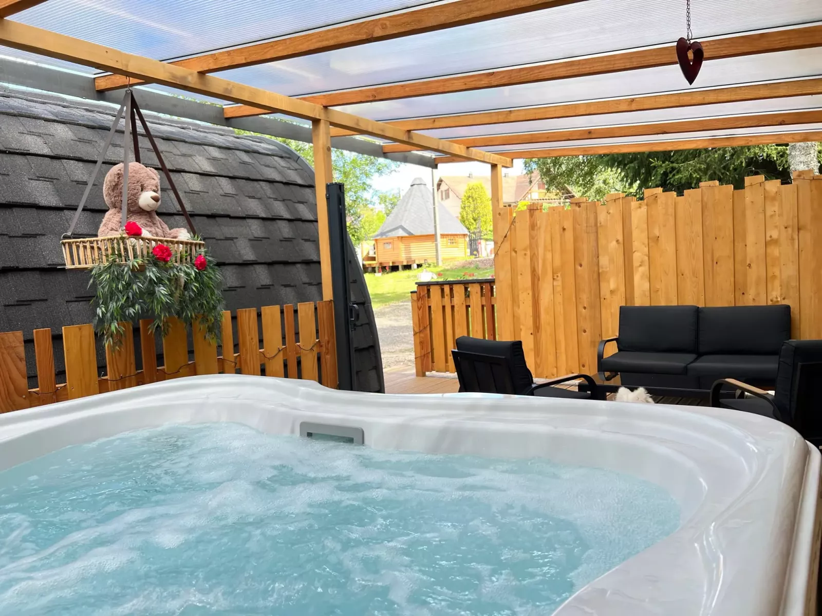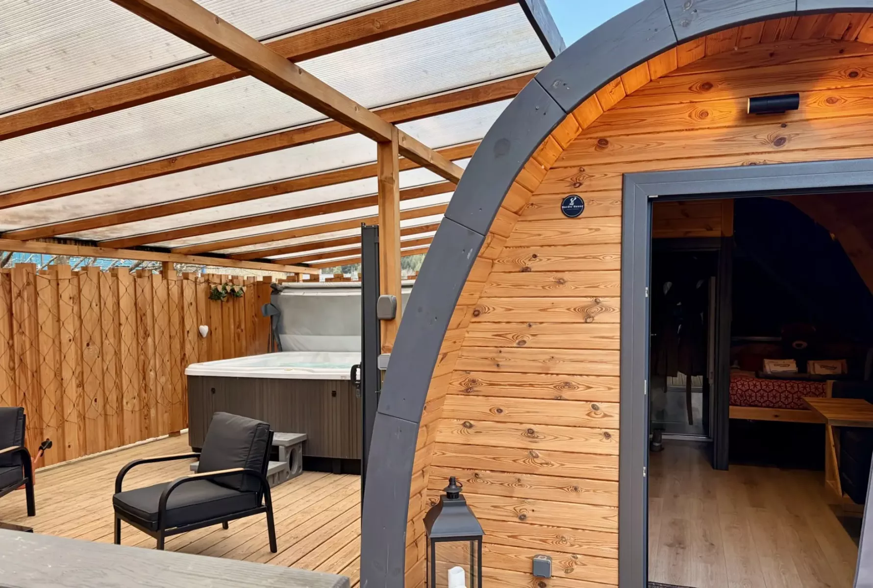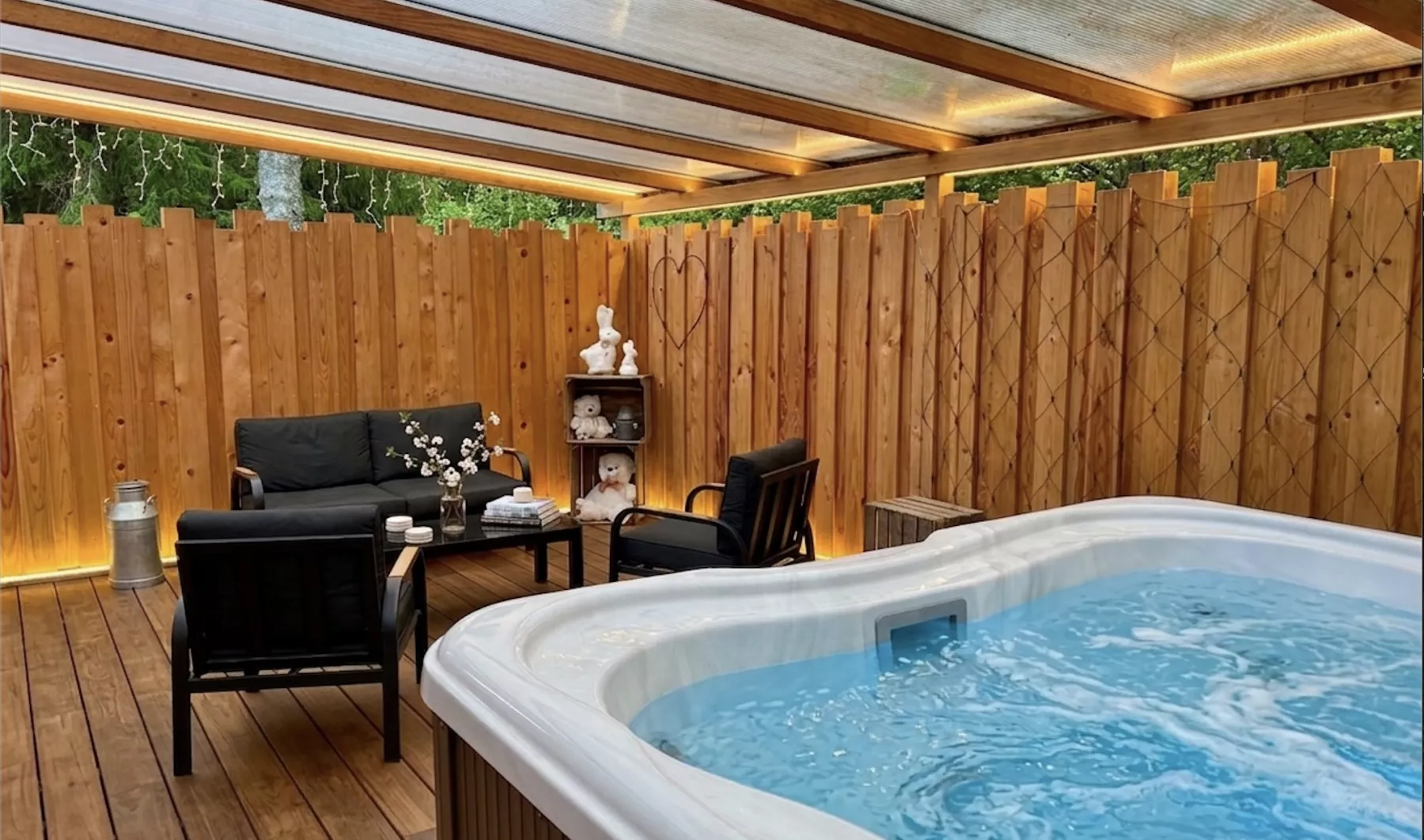 - Grand jacuzzi chauffé à 38°C accessible 24h/24h toute l’année, en toute intimité, sur terrasse privée
