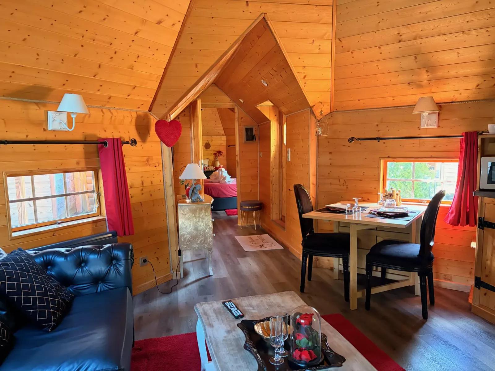 Bienvenue dans le Chalet Cupidon, une parenthèse enchantée au cœur des Vosges. Ce lieu unique, voué à la célébration de l'amour, a été conçu pour offrir aux amoureux un confort absolu. Profitez de moments suspendus sur la terrasse privée, nichés dans la chaleur d'un immense jacuzzi à l'abri des regards. Avec son style baroque raffiné et son cadre romantique évoluant au gré des saisons, tout ici vous invite à une évasion inoubliable en tête-à-tête.