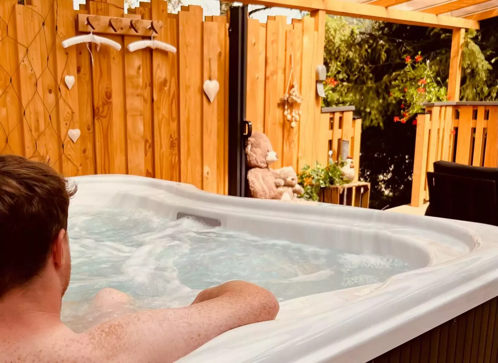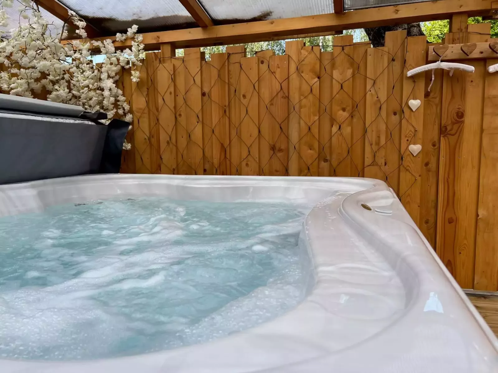 - Grand jacuzzi chauffé à 38°C accessible 24h/24h toute l’année, en toute intimité, sur terrasse privée