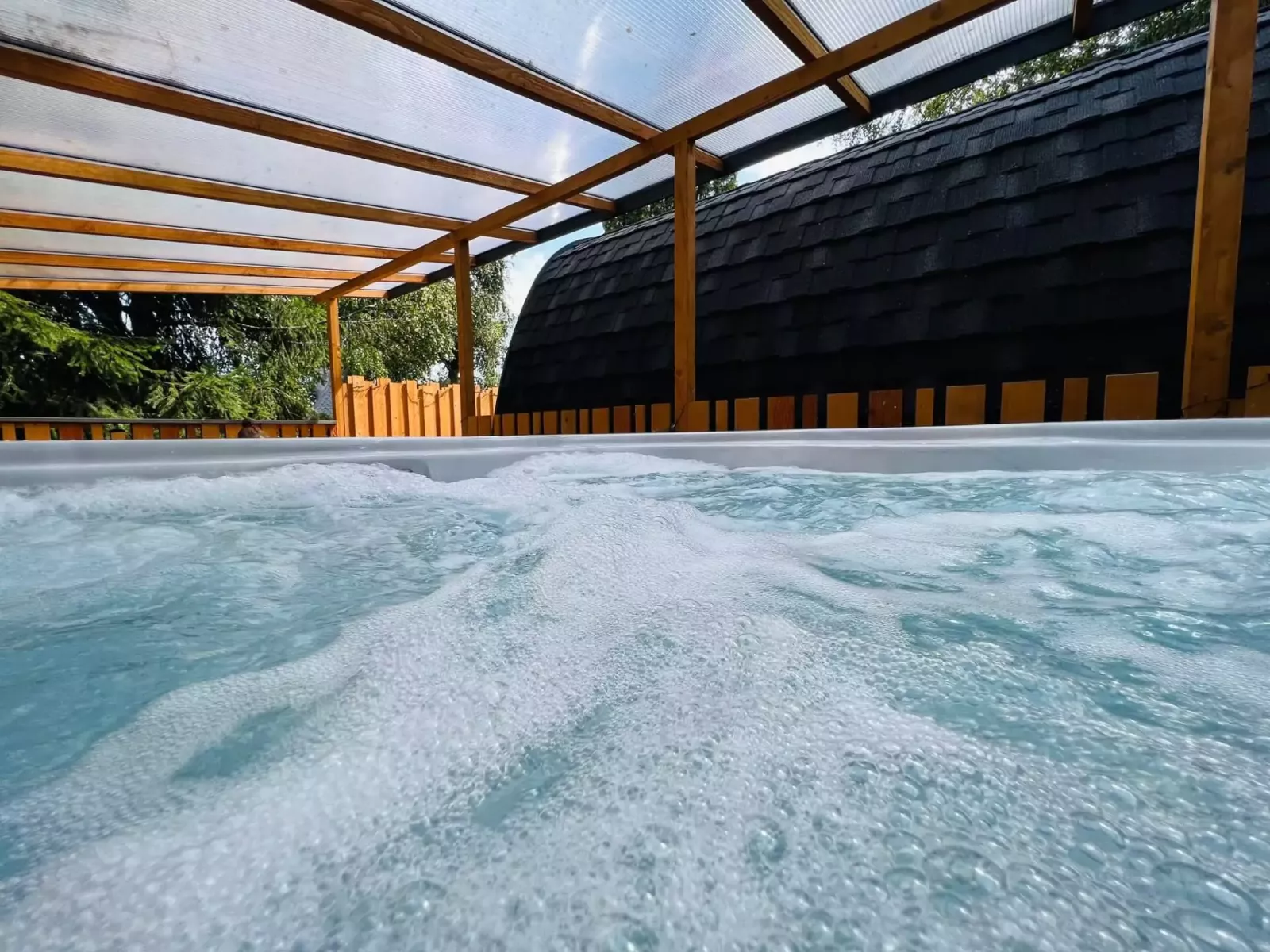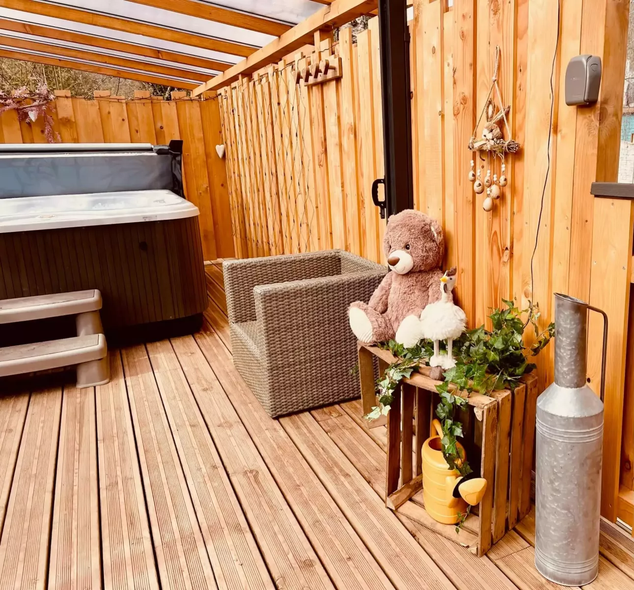 Détente et relaxation garantie grâce au bien être du jaccuzzi installé discrètement sur votre terrasse privée et en toute intimité.