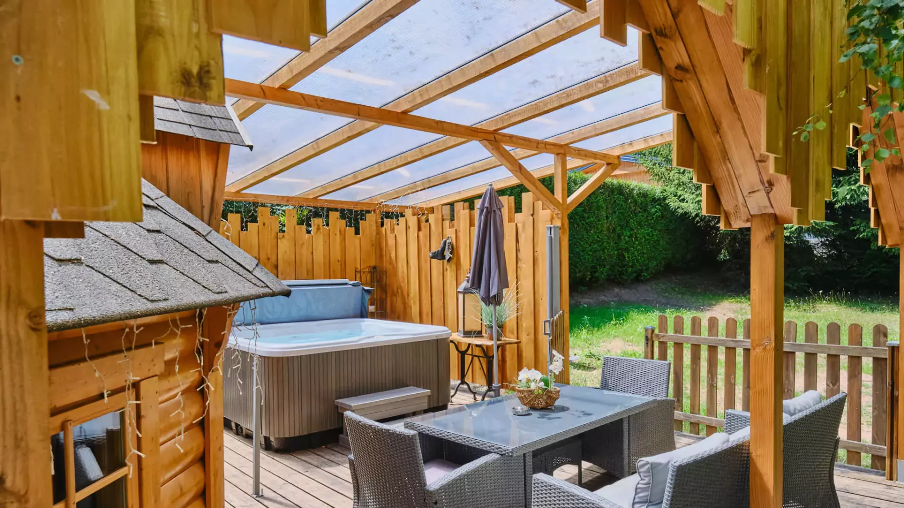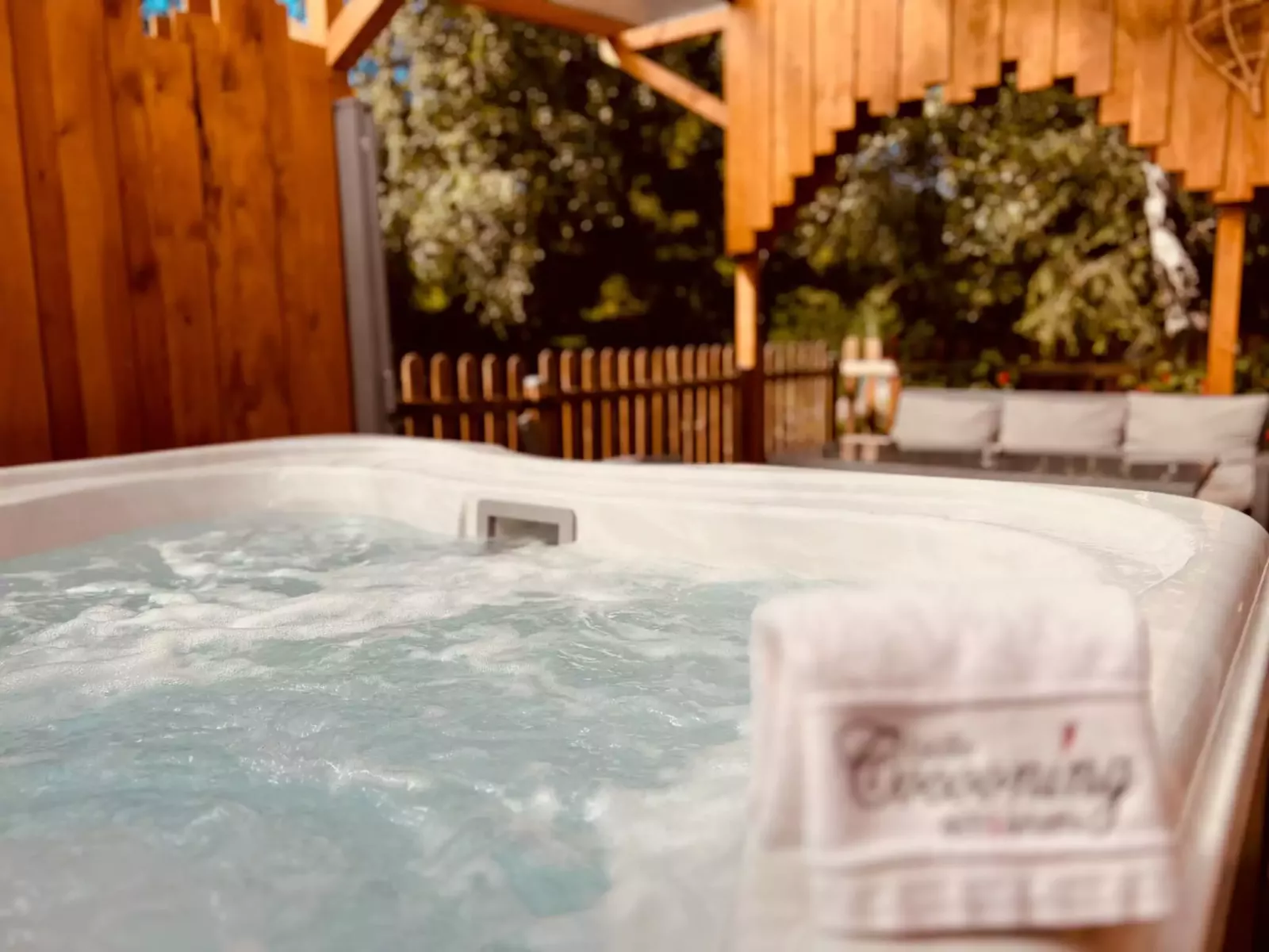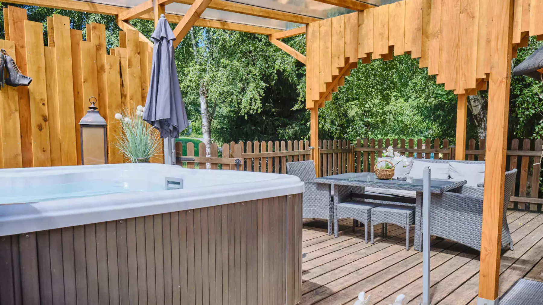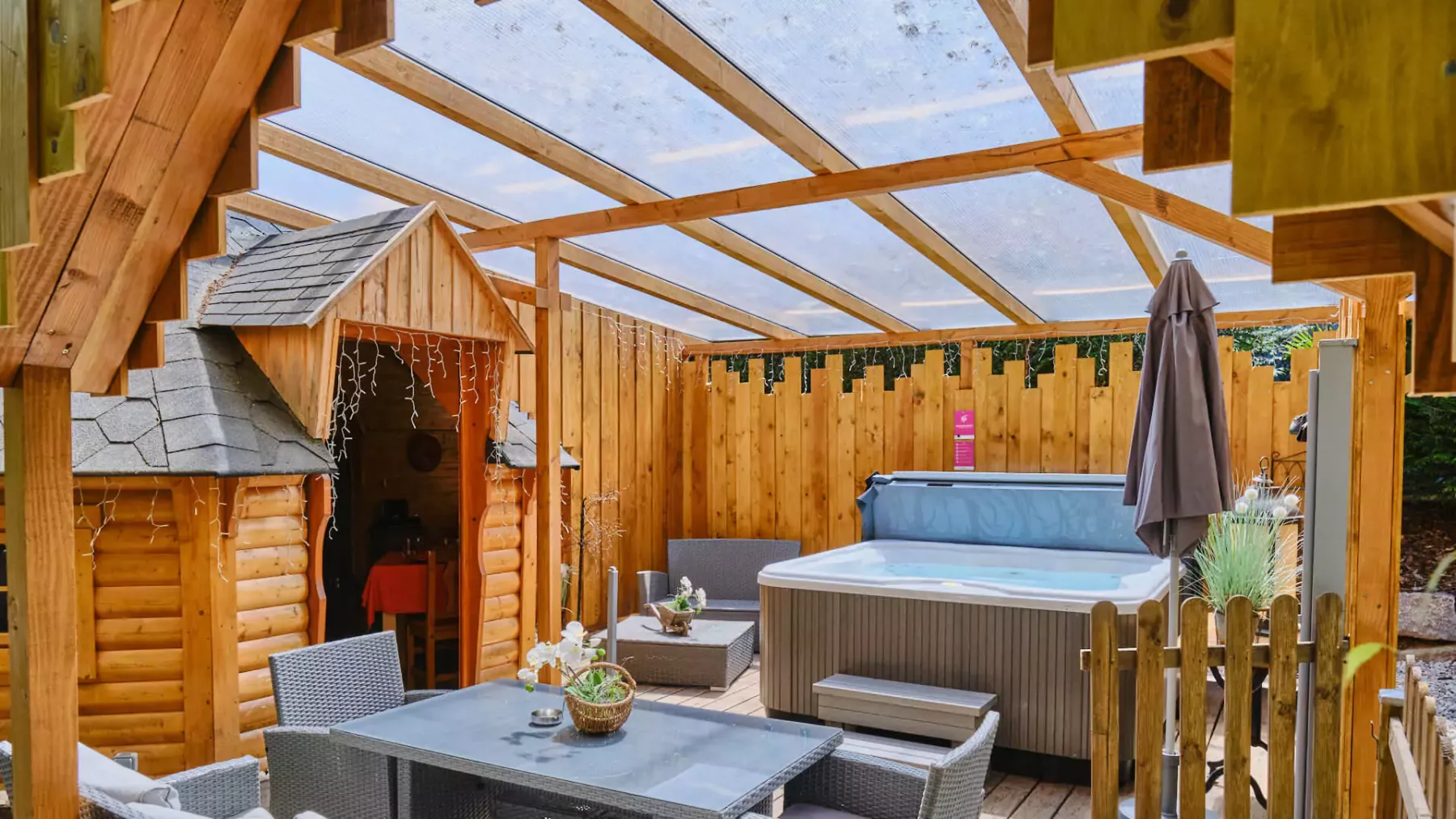 - Grand jacuzzi chauffé à 38°C accessible 24h/24h toute l’année, en toute intimité, sur terrasse privée