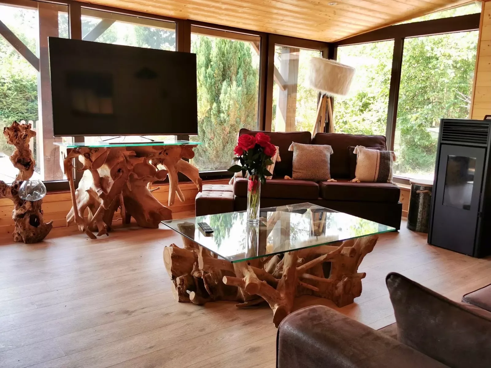 - Salon avec grandes baies vitrées, télevision