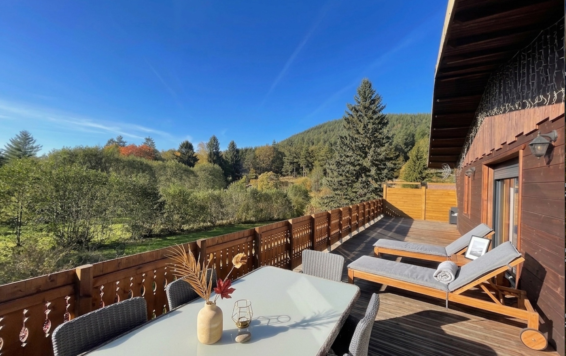 Profitez d'un moment de détente absolue dans le grand jacuzzi privé, installé sur une vaste terrasse de 65 m² offrant une vue imprenable sur les bois.