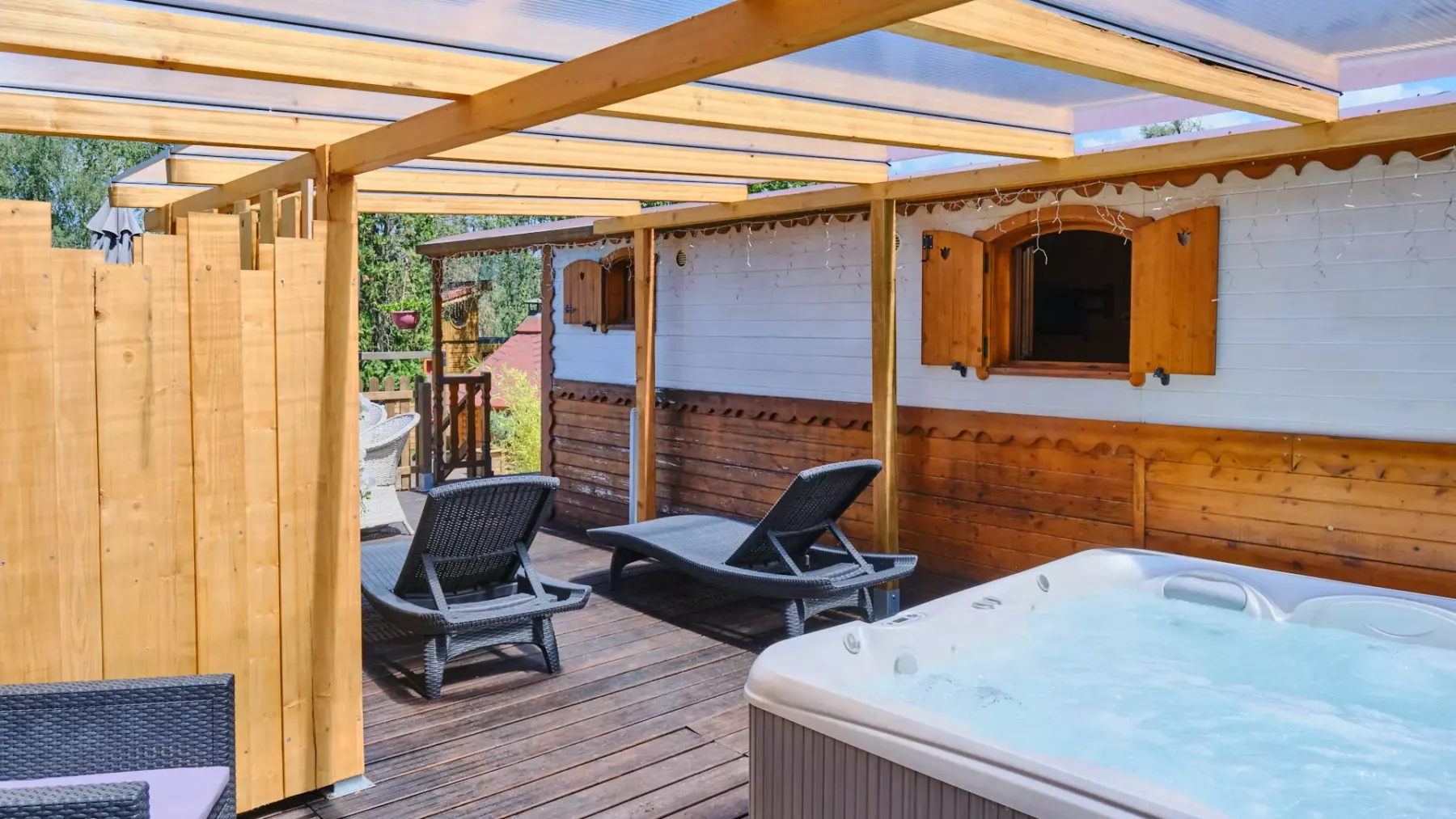 - Grand jacuzzi chauffé à 38°C accessible 24h/24h toute l’année, en toute intimité, sur terrasse privée