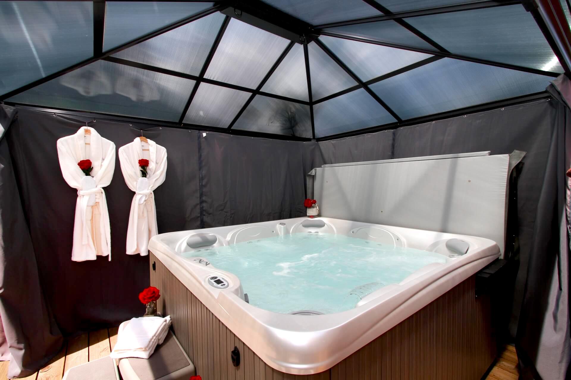 Pour cocooner tranquillement, vous aurez accès à un jacuzzi privatif, eau à 38°C et jets hydromassants, le top ! Le tarif est de 35 € par personne pour 3 heures de relaxation (heure supplémentaire 10 €).